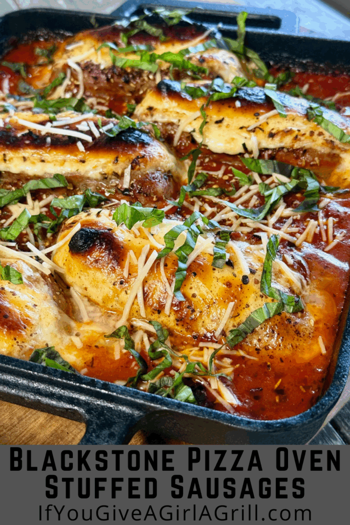 Top Blackstone Pizza Oven Stuffed Sausages with parmesan and fresh basil and serve with garlic toast 🙂