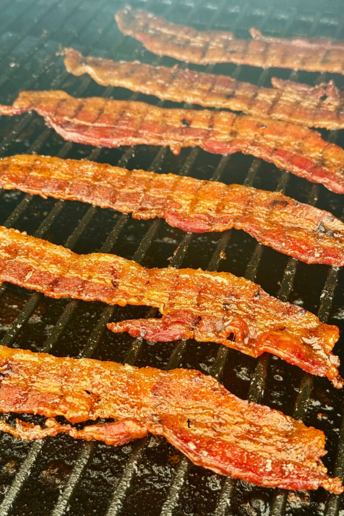 Let the bacon hang out on the smoker or Traeger for an hour, flip, and let it do it’s thing for another hour.